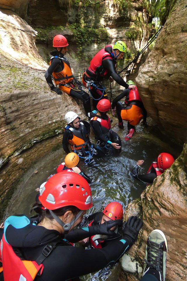 -canyoning: the descent of the streams to admire the stratigraphy of our mountains. Equipment included, bring a bathing suit, towel and old sneakers.