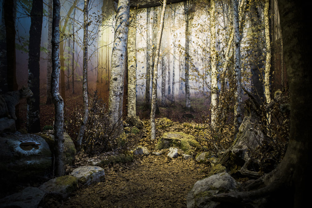 The exhibition features two particular dioramas with the fauna of the area (deer, hare, wild cat …), and several showcases with mammals, birds, reptiles, amphibians and insects that inhabit the Cansiglio and Col Nudo-Monte Cavallo area, between the provinces of Belluno, Treviso and Pordenone; a series of photos documenting the karst phenomena and numerous fossils found in the area together with a collection of prints illustrating the various aspects of the forest.