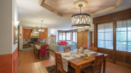 The living area of the villa consists of a kitchen equipped with a refrigerator, a microwave, a traditional oven, a 6-burner battery, a dishwasher and a modern pellet stove to heat guests after a day of skiing in the Dolomites.